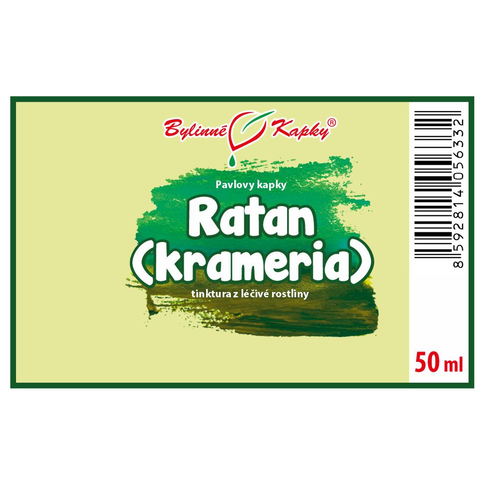 Přírodní bylinný celkový (komplexní) extrakt z kořenů léčivé rostliny ratanu (kramerie). (Krameria lappacea syn. Krameria triandra). Tinctura Krameriae radix. Tincture Para rhatany root.