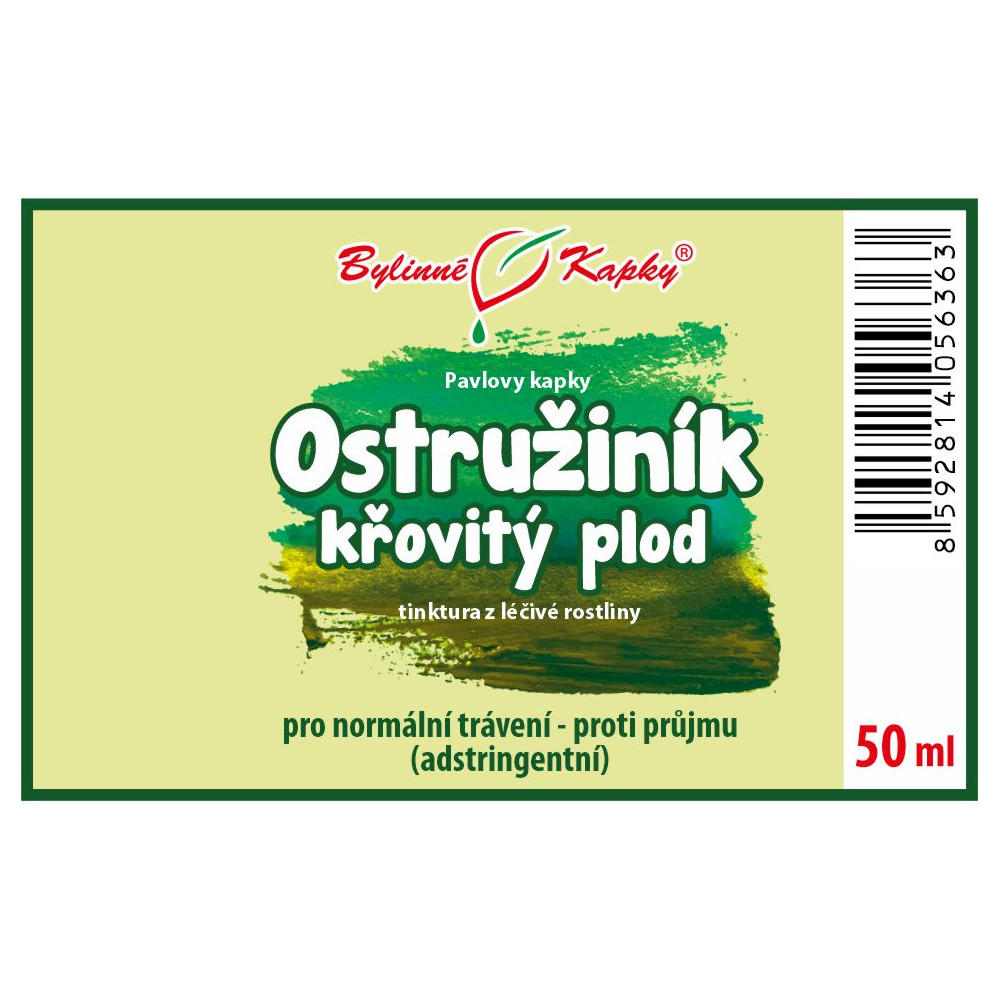 Ostružiník křovitý plod (ostružina plod) (bylinná tinktura - Pavlovy bylinné kapky). Přírodní bylinný celkový (komplexní) extrakt z plodů léčivé rostliny ostružiníku křovitého pro normální trávení - proti průjmu (adstringentní). Ostružiník křovitý (Rubus fruticosus). Tinctura Rubi fructus. Tincture Blackberry fruit.